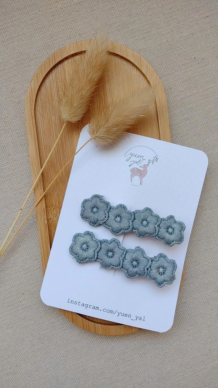 Delicado set de clips con diseño de flor bordada, perfectos para complementar peinados con un toque suave y femenino.