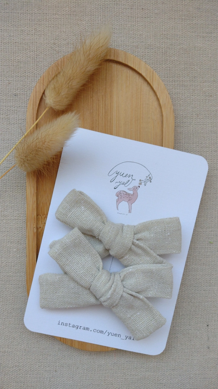 Set de lazos en tono lino natural, perfectos para complementar peinados con un estilo clásico y delicado.